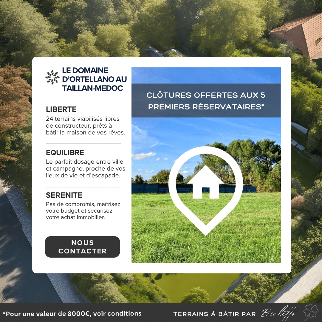 Cette semaine, nous vous invitons à découvrir nos terrains du « Domaine d’Ortellano » au Taillan-Medoc 🤩