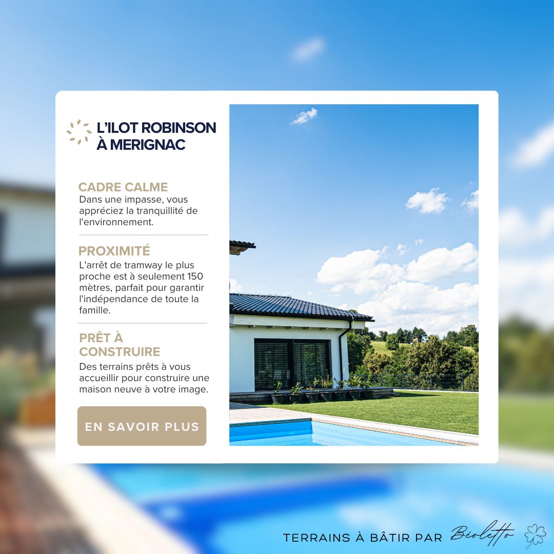 Cette semaine, nous vous invitons à découvrir nos terrains de « L’îlôt Robinson » à Mérignac 🏡